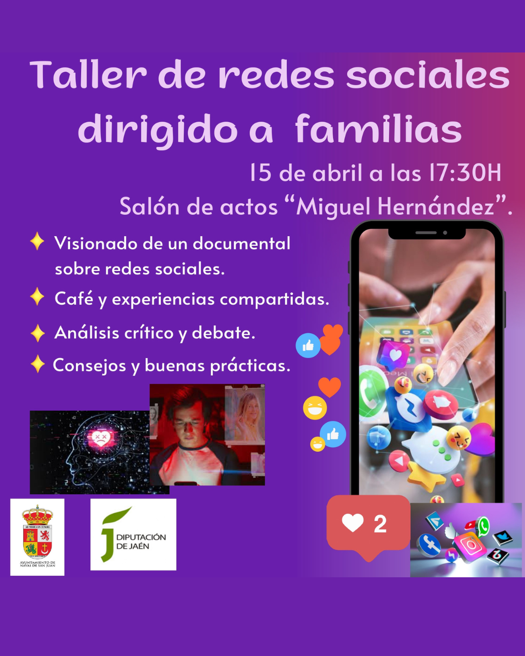 El próximo 15 de abril a las 17:30 horas, en el Salón de actos 'Miguel Hernández', se celebra un taller de redes sociales dirigido a familias.