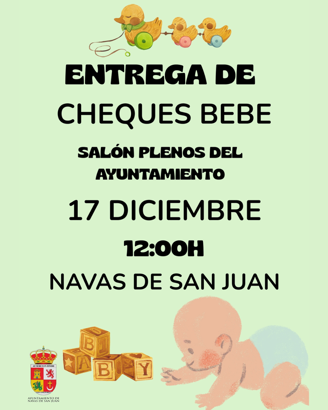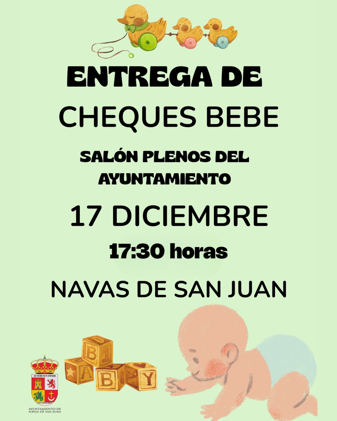 Un año más, el Ayuntamiento de Navas de San Juan hará entrega de los Cheques Bebé a las familias del municipio por el nacimiento de los niños y niñas durante el año 2025.