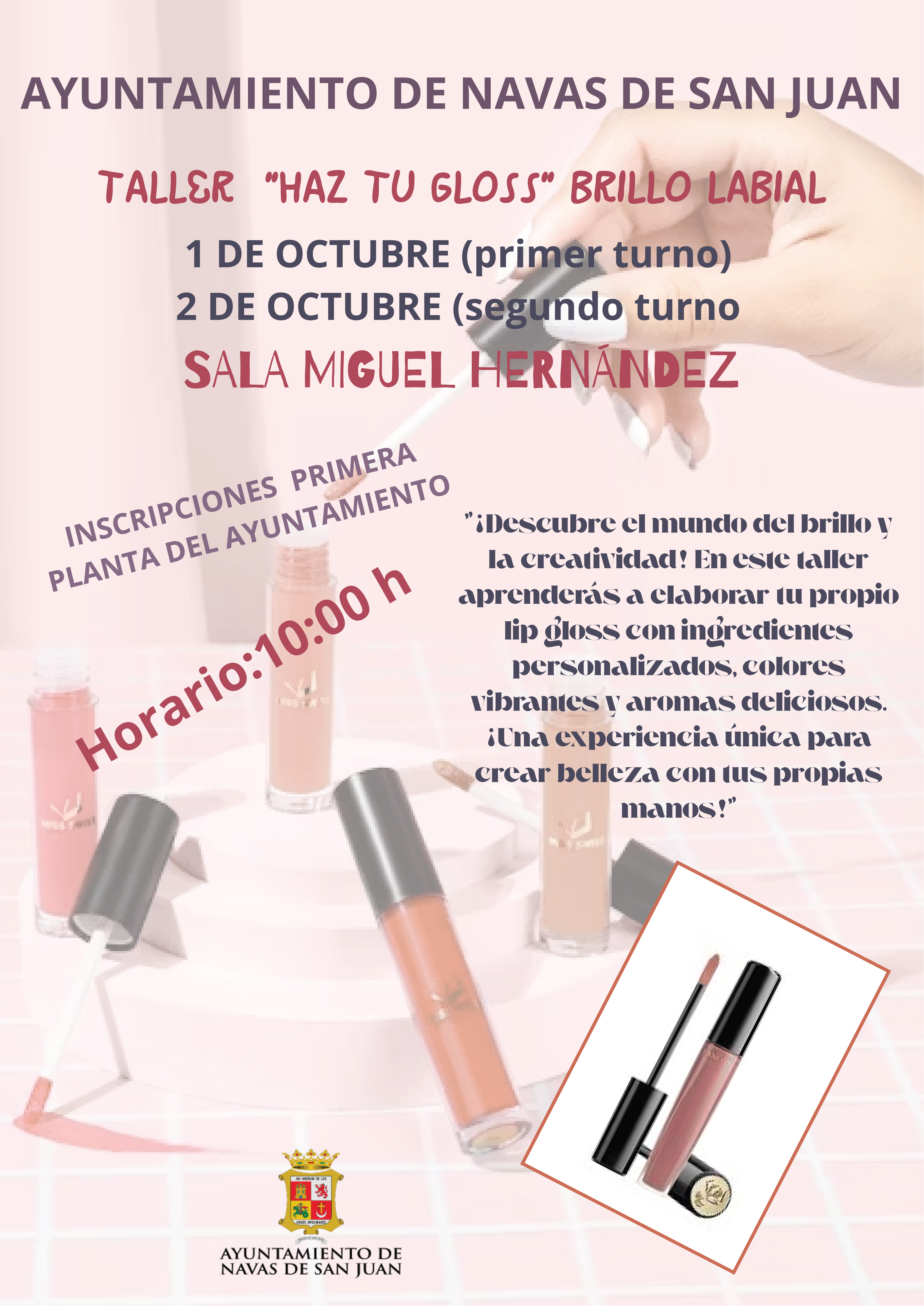 Vuelve a Navas de San Juan el taller ‘Haz tu Gloss’, una actividad creativa y divertida donde los participantes podrán aprender a elaborar su propio brillo labial.