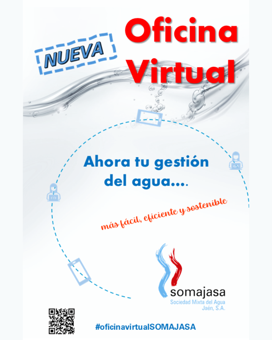 La Oficina Virtual de ‘Somajasa’ ofrece una plataforma más ágil, sencilla, funcional e intuitiva para que los usuarios puedan gestionar su contrato de agua desde cualquier lugar. Está disponible en castellano y en inglés, y se puede acceder a través de la web oficinavirtual.somajasa.es, a través del QR que aparece en el cartel o mediante la app gratuita para Android e iOS.