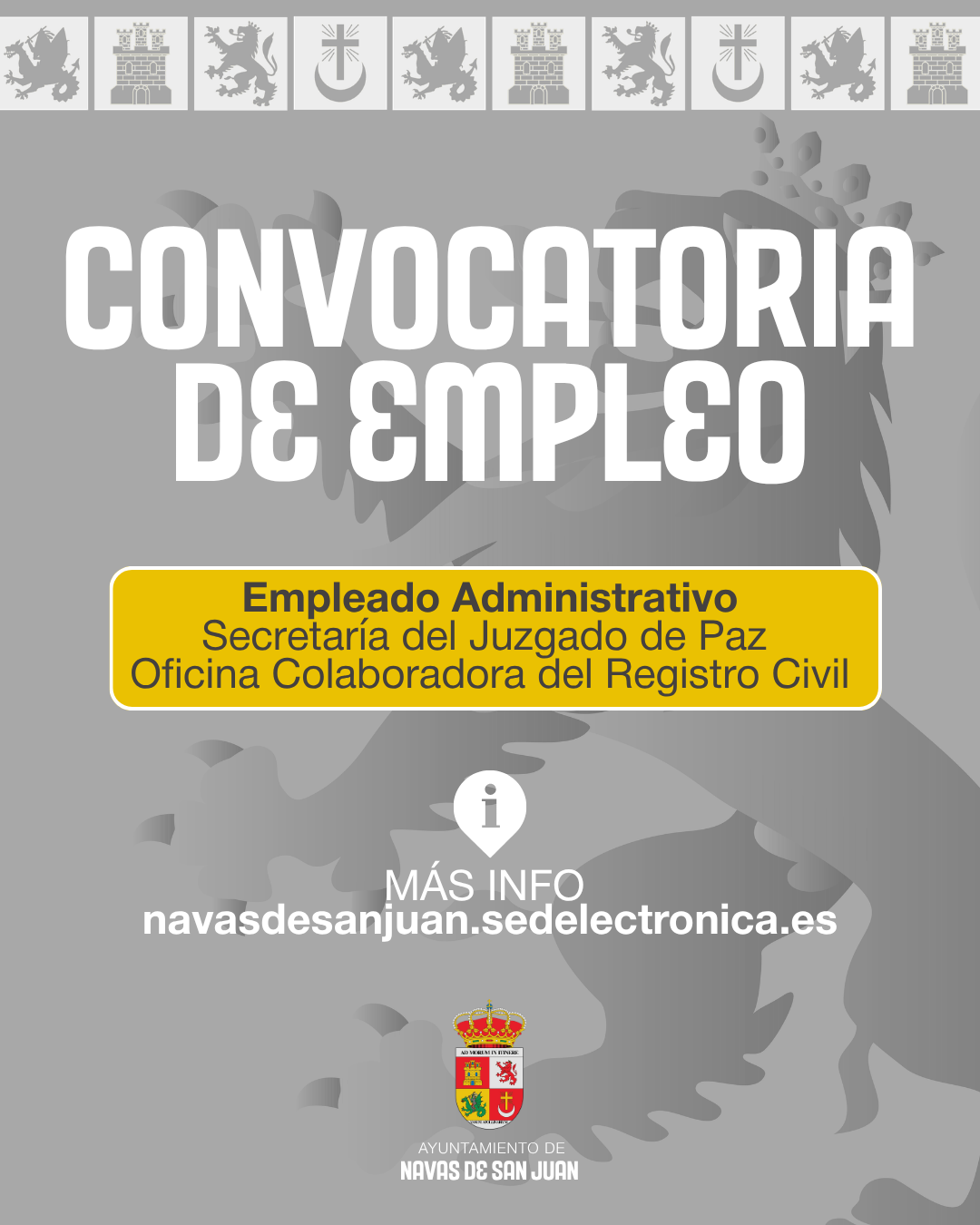 El Ayuntamiento de Navas de San Juan hace pública las bases de la convocatoria para la provisión con carácter interino de un empleado administrativo para desempeñar tareas administrativas en la Secretaría del Juzgado de Paz y Oficina Colaboradora del Registro Civil de Navas de San Juan.