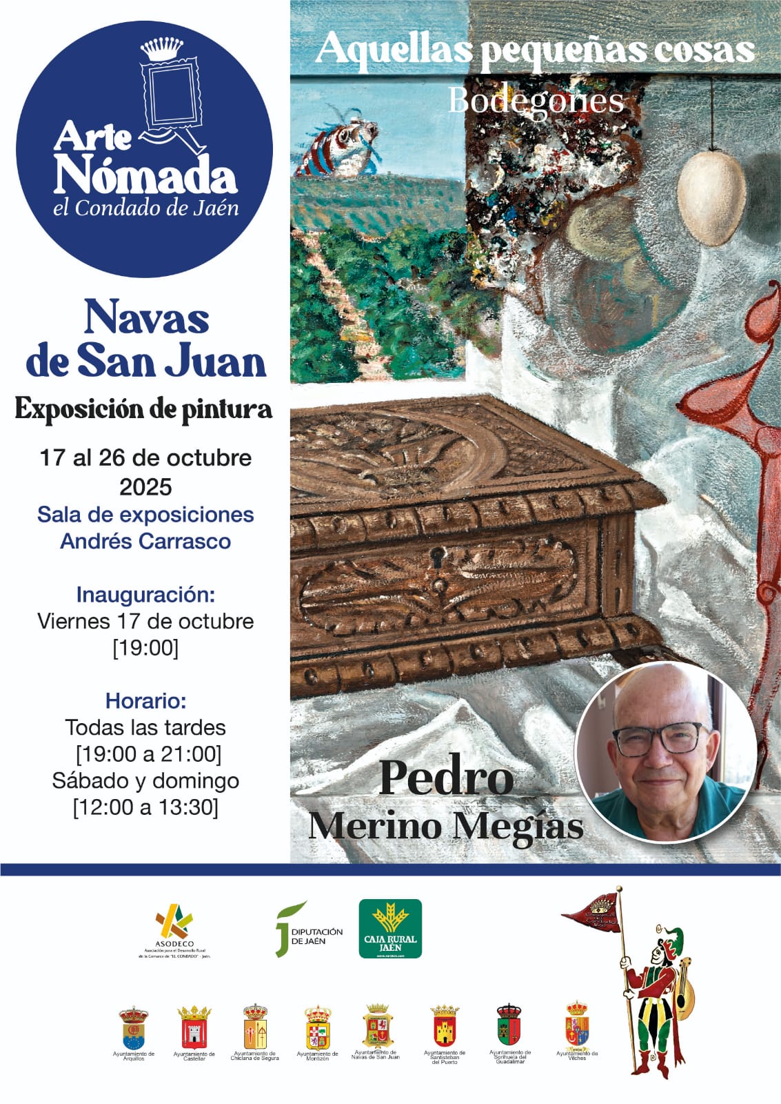El pintor Pedro Merino Megías, natural de Navas de San Juan, será el protagonista de una nueva muestra incluida en el ciclo de exposiciones 'Arte Nómada, El Condado de Jaén'. Su participación tiene un significado especial, ya que se convierte en el primer artista de la comarca seleccionado para formar parte de este programa cultural, un merecido reconocimiento a su talento, trayectoria y aportación al panorama artístico local.