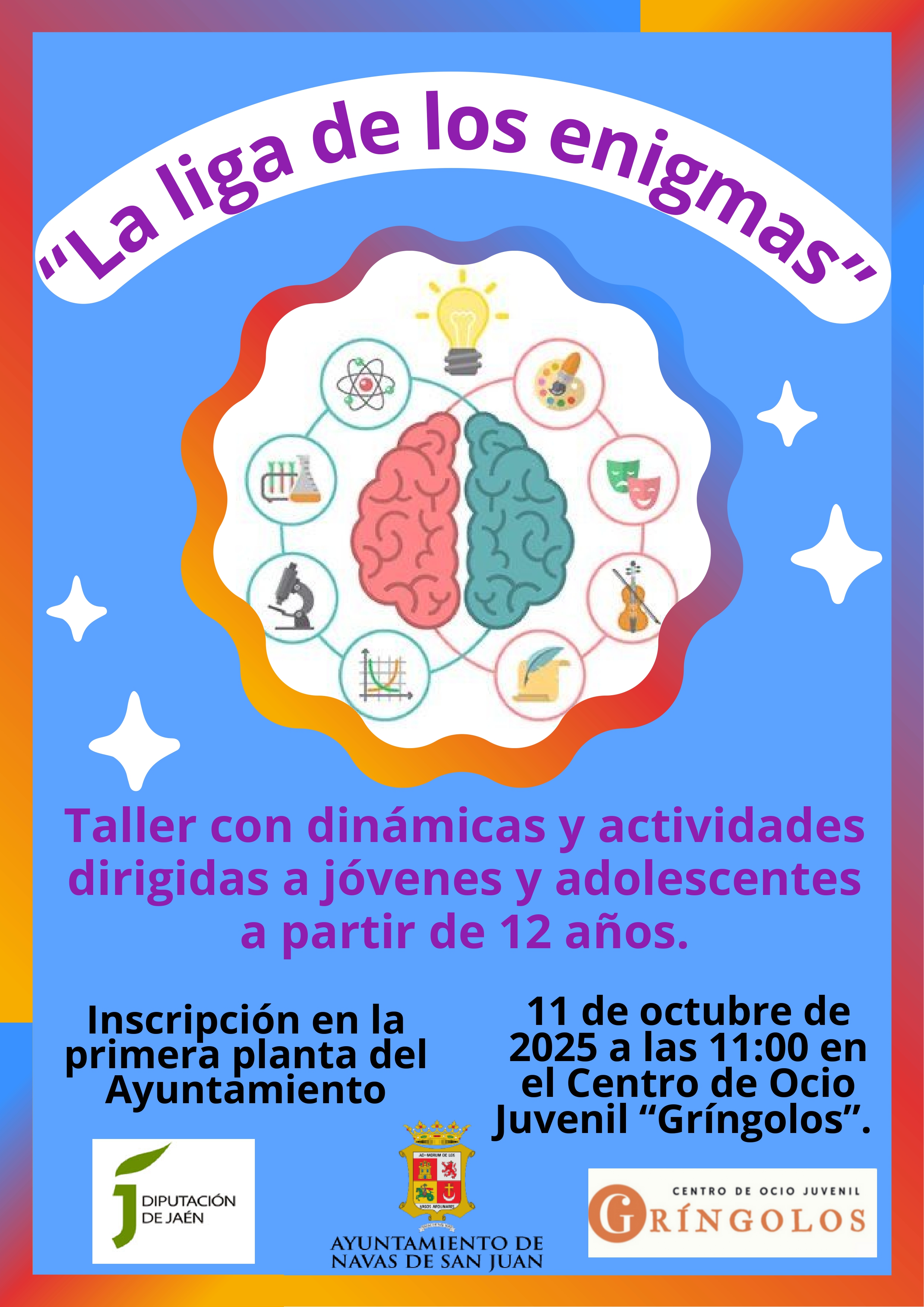 Anímate a participar en ‘La liga de los enigmas’, un taller dirigido a jóvenes y adolescentes a partir de los 12 años. Los participantes disfrutarán de dinámicas y actividades que pondrán a prueba su mente, al mismo tiempo que fomentarán el trabajo en equipo, la creatividad y la capacidad para resolver problemas.
