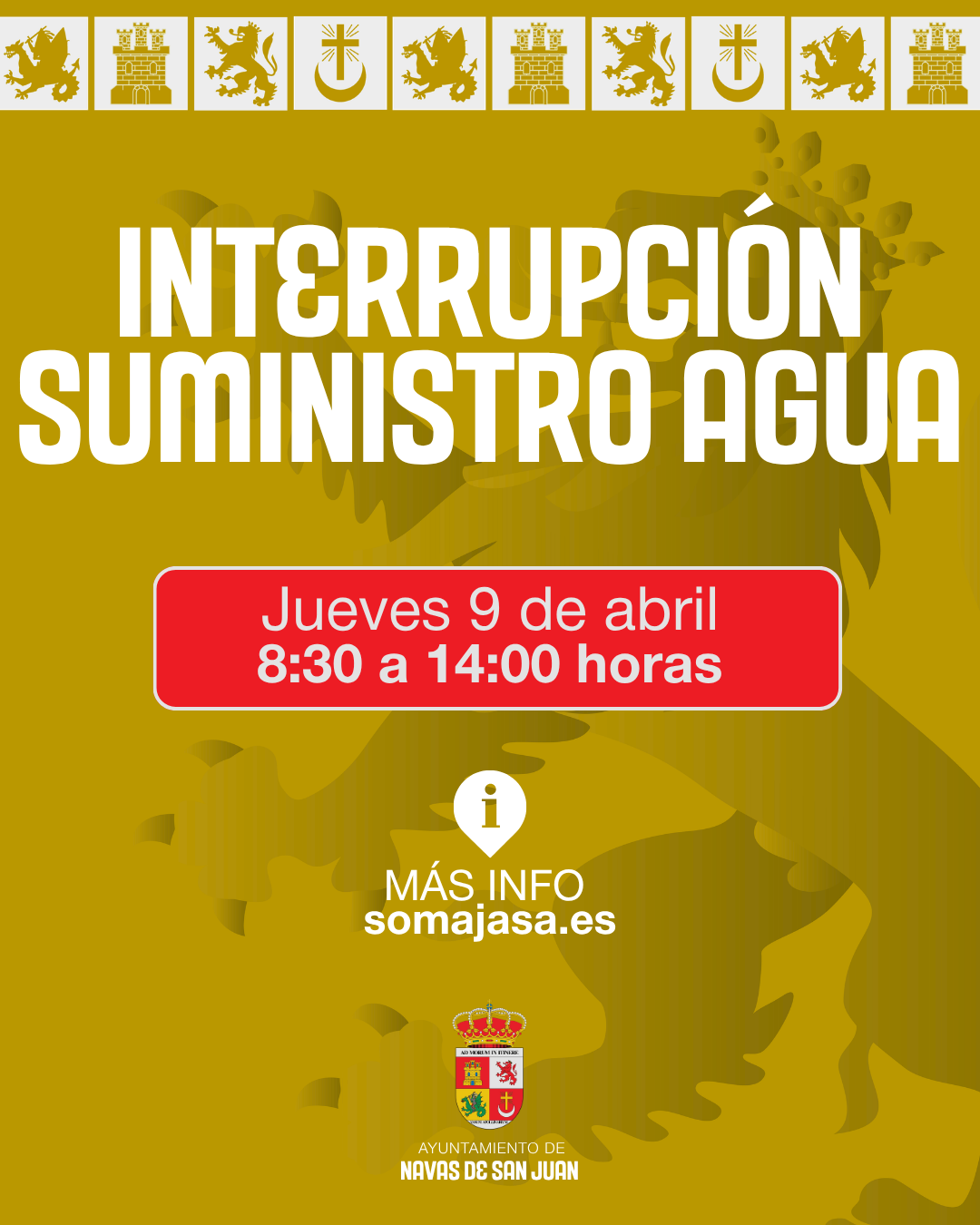 SOMAJASA informa que debido a las obras que se están realizando en la Calle Ejército Español, se llevará a cabo una interrupción programada del suministro de agua en nuestro municipio.