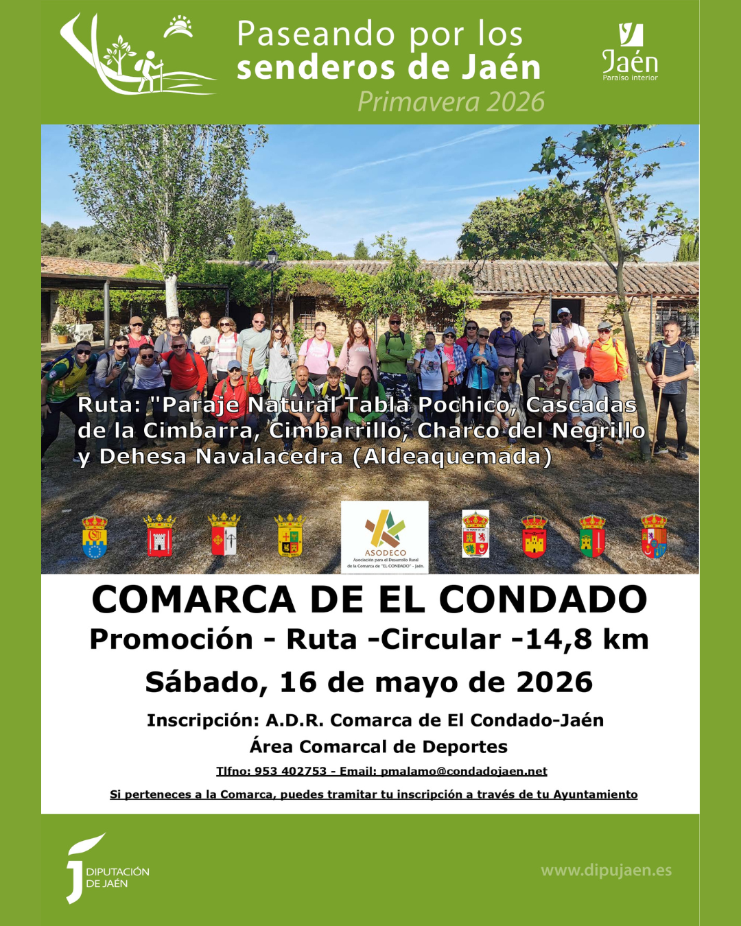 El programa de rutas senderistas de la Comarca propone el sábado 16 de mayo una ruta por el Paraje Natural Tabla Pochico, las Cascadas de la Cimbarra y del Cimbarrillo, el Charco del Negrillo y la Dehesa Navalacedra.