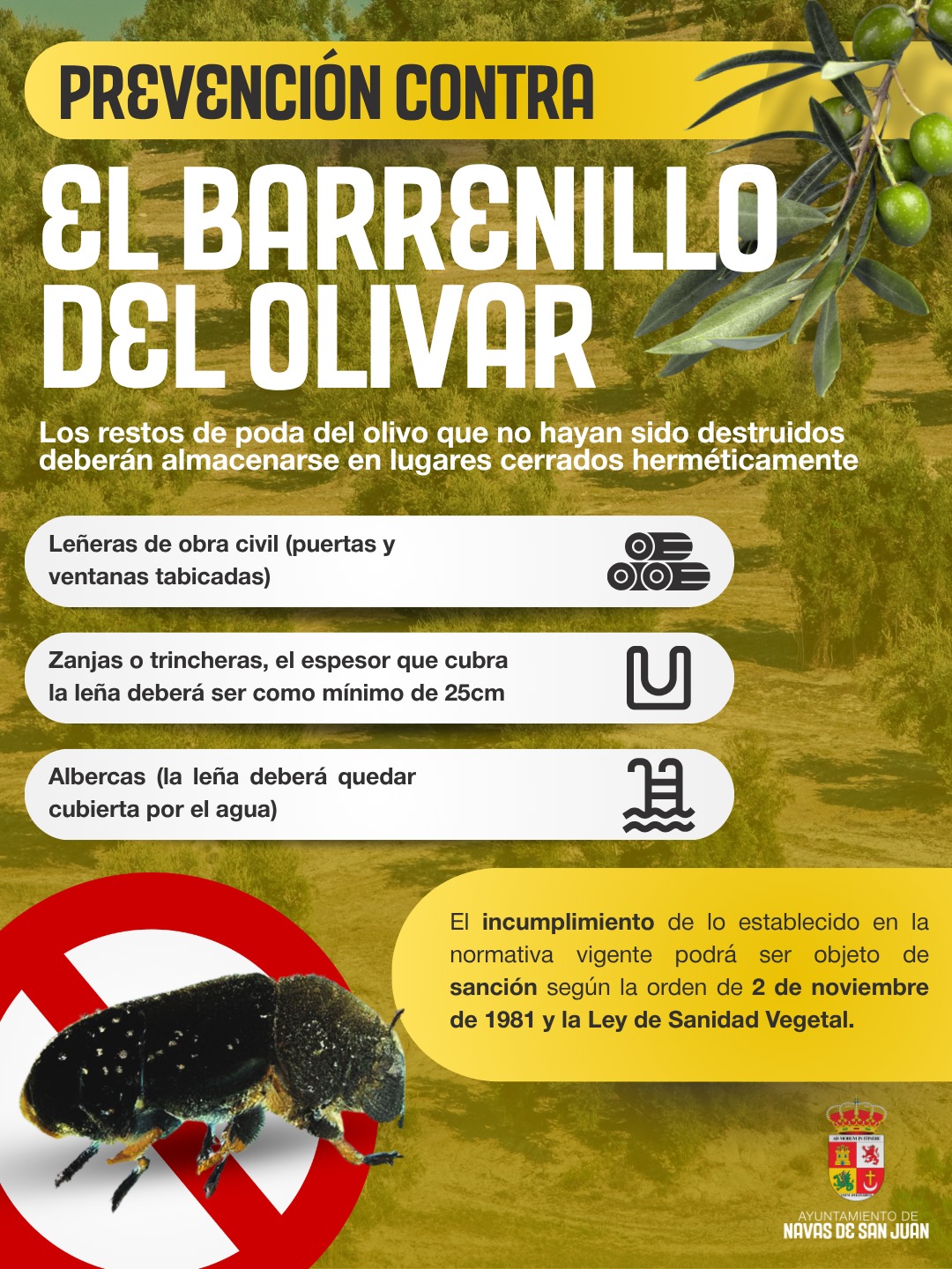 Desde el Ayuntamiento de Navas de San Juan recordamos a todos los vecinos que produzcan leña procedente de la poda del olivar, la importancia de almacenarla correctamente, con el fin de prevenir la propagación de plagas como el ‘barrenillo’ o la ‘palomilla’, que pueden causar daños significativos a la agricultura.