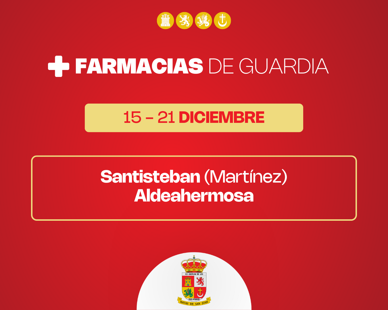Farmacias de guardia para esta semana del lunes 15 de diciembre al domingo 21 de diciembre