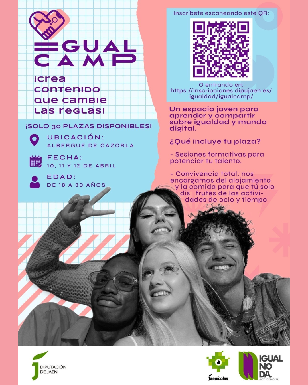 Inscríbete escaneando el QR del cartel o a través de https://inscripciones.dipujaen.es/igualdad/igualcamp/