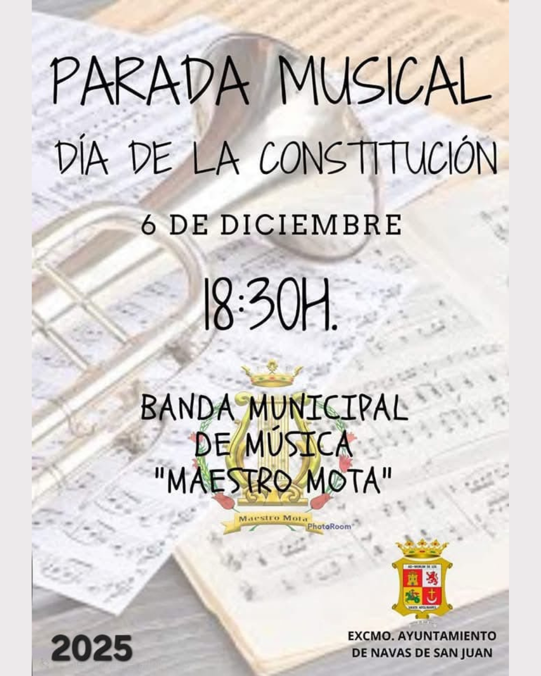 El próximo sábado 6 de diciembre, con motivo del Día de la Constitución, se celebrará una Parada Musical a las 18:30 en Navas de San Juan.