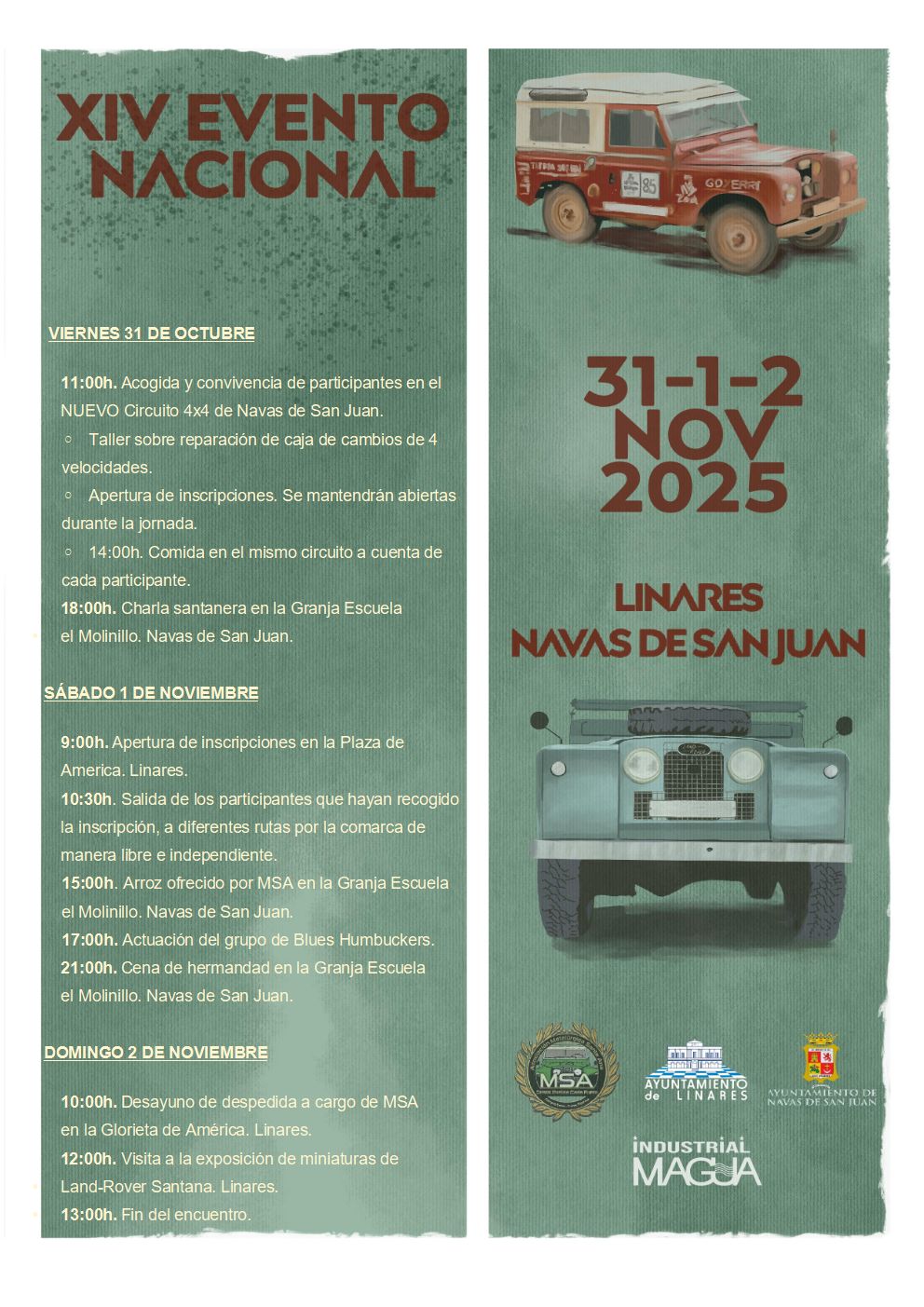 Navas de San Juan se prepara para la emoción, llega el XIV Evento Nacional Land Rover el primer fin de semana de noviembre, con adrenalina y espectáculo para todos los asistentes.